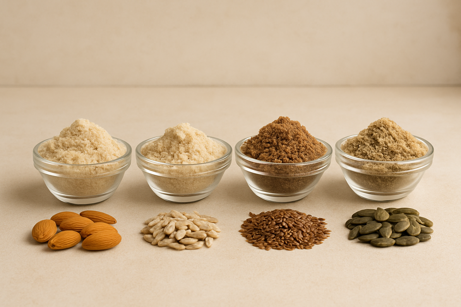 Harinas desgrasadas de frutos secos y semillas 100% naturales, ideales como insumo para la elaboración de alimentos saludables, productos funcionales y fórmulas nutricionales. Aportan fibra, proteínas y micronutrientes, con bajo contenido graso gracias al proceso de prensado en frío. Se utilizan en panadería, snacks, mezclas proteicas, suplementos, alimentos sin gluten, pastas, productos fitness y más. Ingredientes sostenibles que realzan el valor nutricional y diferencian tus productos en el mercado.