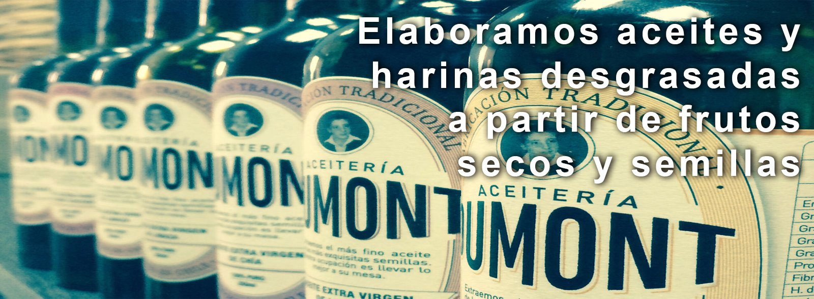 En Aceitería Dumont nos especializamos en la extracción y elaboración de aceites y harinas de frutos secos y semillas. Nuestro proceso está diseñado para preservar al máximo las propiedades nutritivas, el sabor y la calidad de cada materia prima.